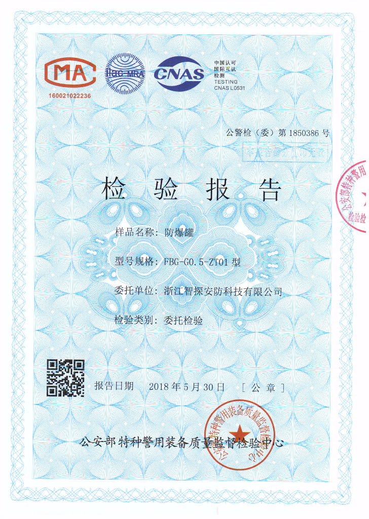 • 防爆罐公安部檢驗報告