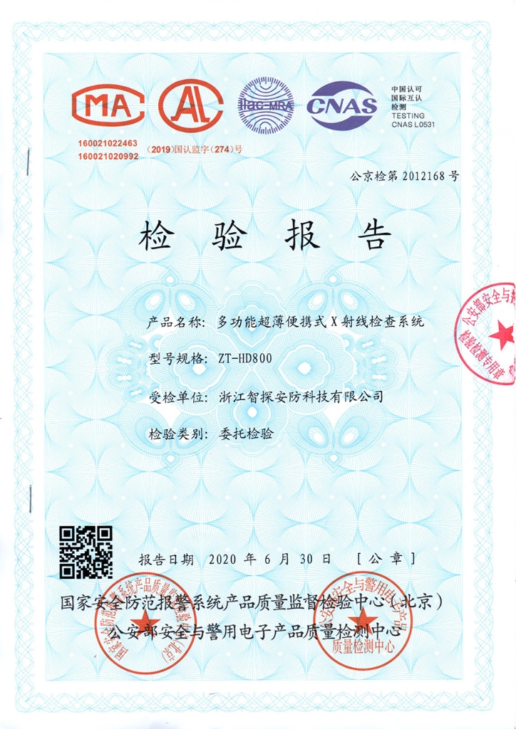 • 便攜式X光機公安部檢驗報告
