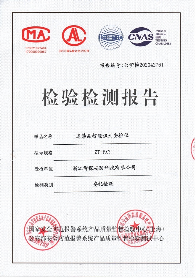 • 智能識別安檢儀公安部檢驗報告