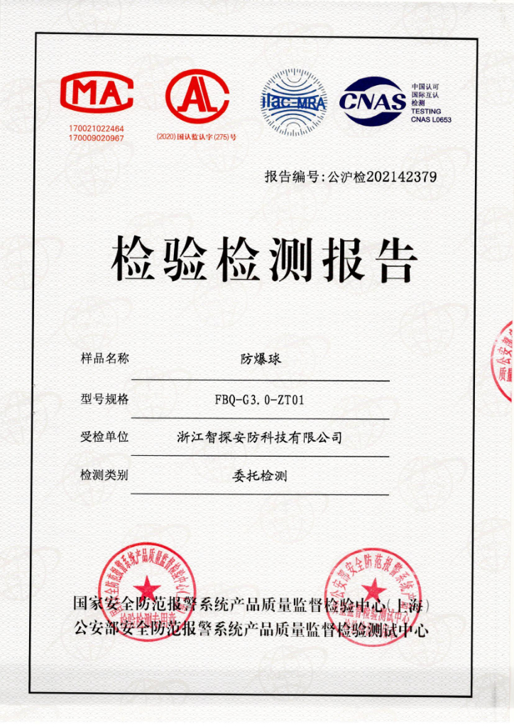 • 防爆球公安部檢測報告