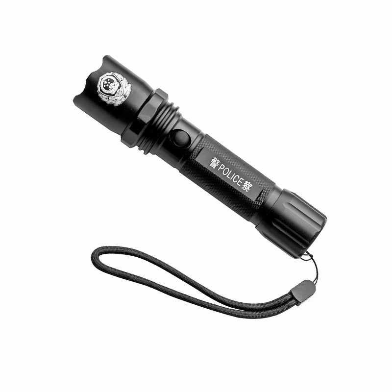 1. 結構:強光手電為前置開關、防滾動圓柱形結構,由六角攻擊頭蓋、照明單元、握柄(包括開關充電組件)、電池、尾蓋及掛繩組成;